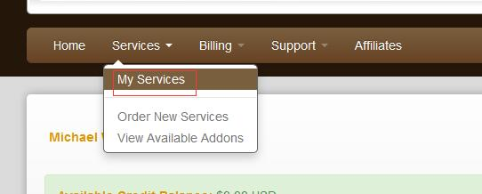 购买成功后回到首页,先选择右上角的【Client Area】,然后选择【My Services】。
