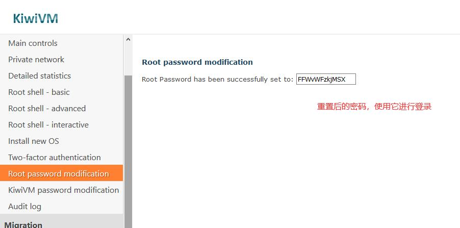 上图中,你可以看到VPS的IP地址、端口信息,这些信息后面进行远程连接时用得到。另外,密码在你的注册邮箱里会收到一封邮件(一共收到两个邮件,其中一个有root用户的默认密码,收不到也没关系,可以在控制面板右侧重置)。 如果你忘记初始密码,或者没收到邮件,可以在控制面板右侧导航进行重置,重置后也是一串随机字符。