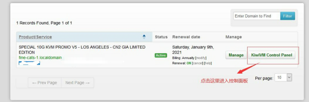 点击【**KiwiVM Control Panel】**进入服务器的控制面板。