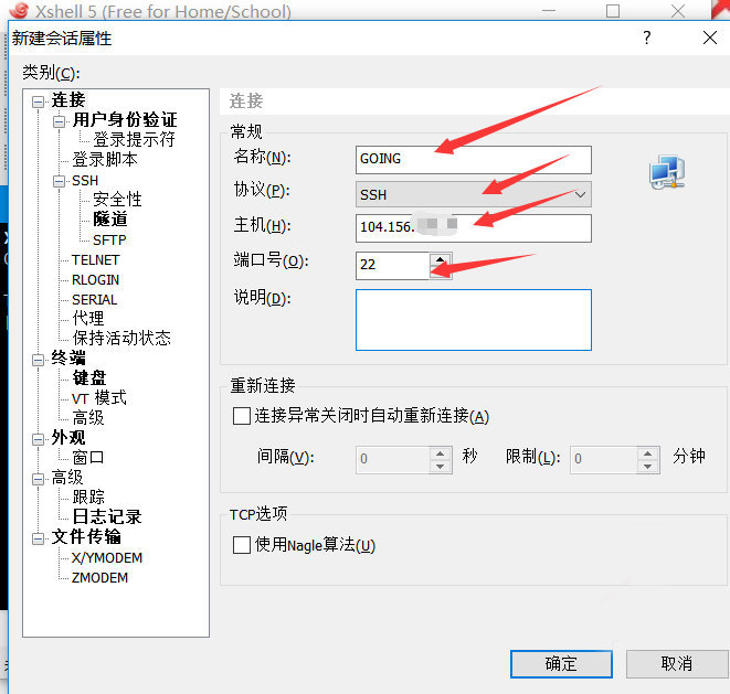 打开Xshell在新建会话窗口填写相关信息,