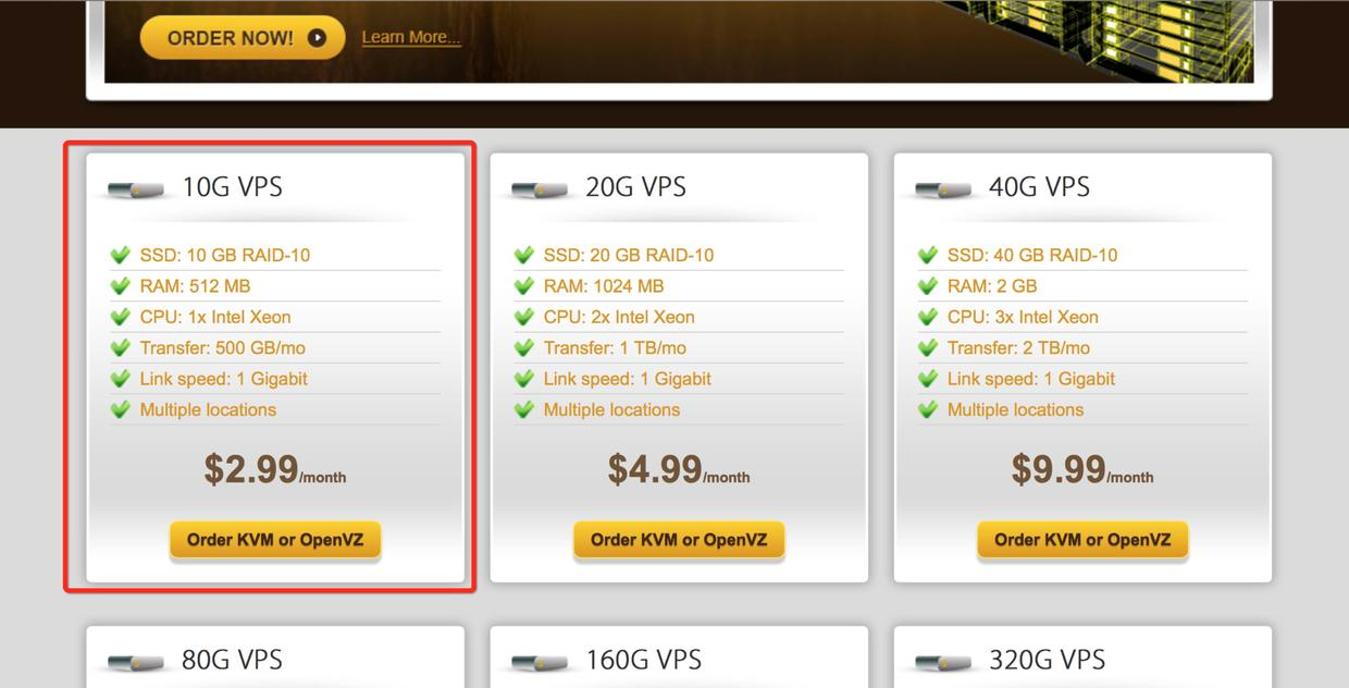 首先我们需要访问搬瓦工(如访问缓慢,请使用bwh88.net访问)购买VPS,对于个人使用而言(每个月500G流量),可以选最便宜的每月2.99$,折合人民币也就20块几毛,和市面大部分收费的 「威屁恩」 费用差不多。